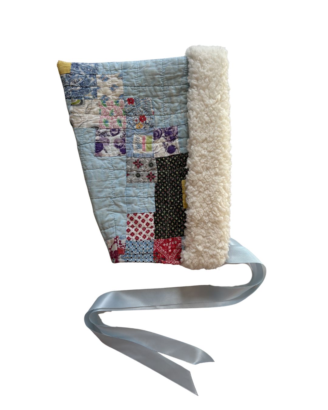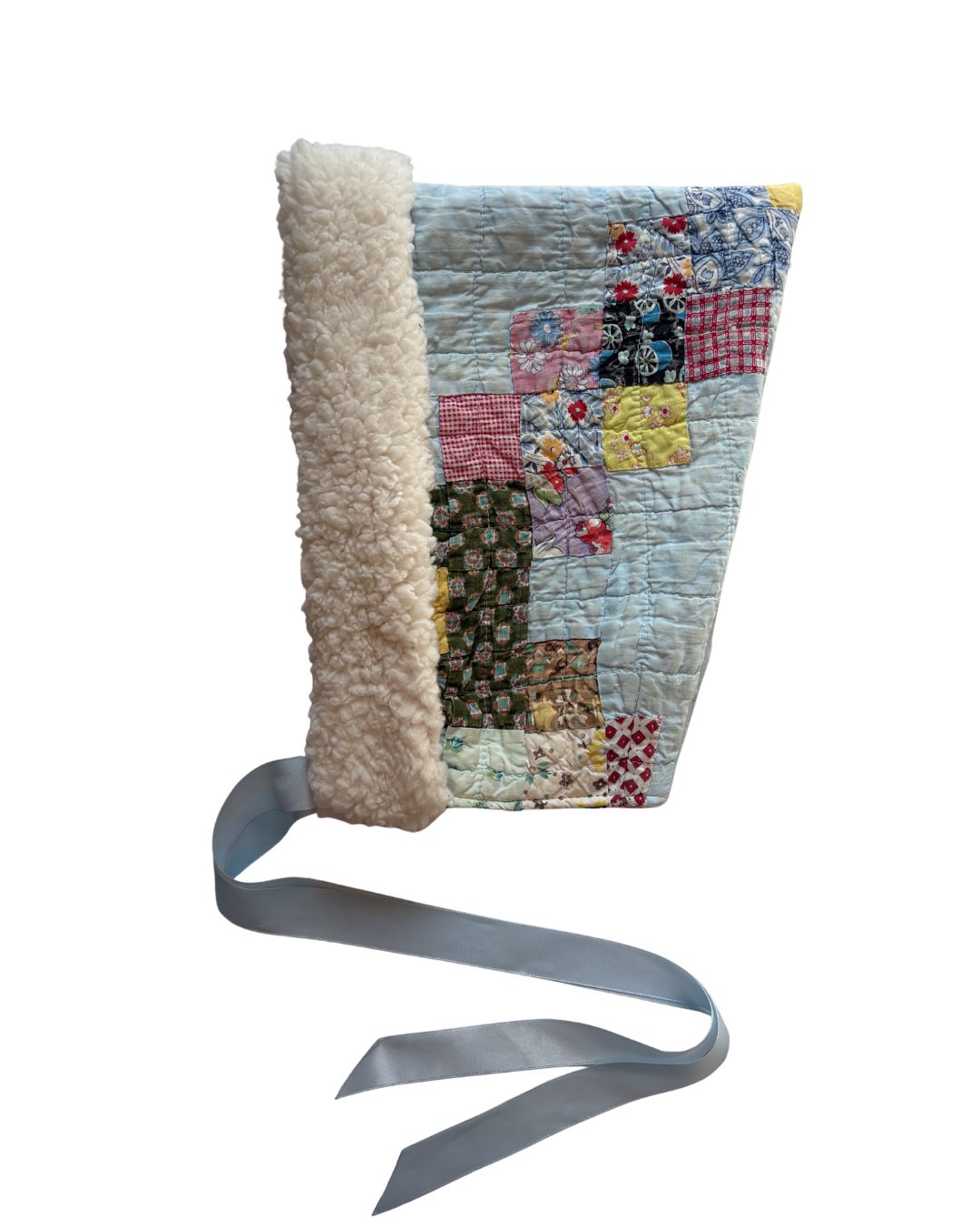1950's quilt; cotton lining; plushy fleece trim; satin ribbon
